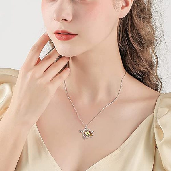 Collar de concha de abulón con foto y medallón de tortuga marina plateada para mujer