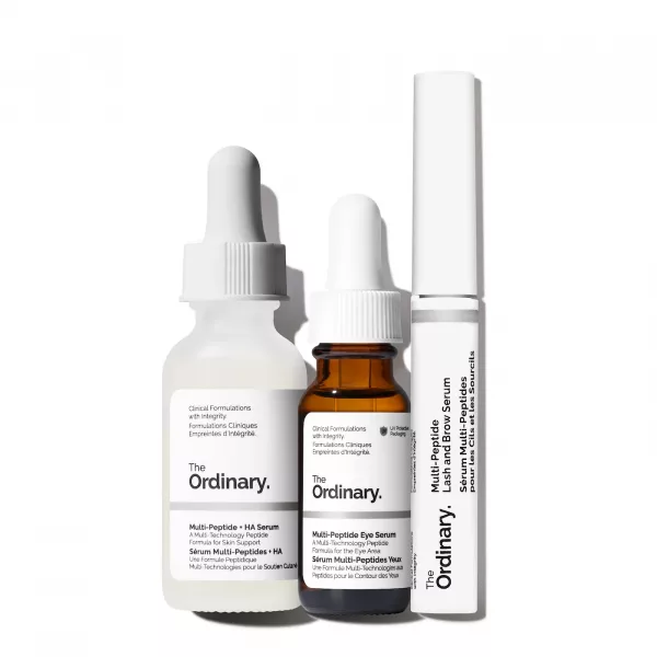 Qué es: un conjunto que incluye tres de las fórmulas multipéptidos de The Ordinary que abordan múltiples problemas en el rostro y los ojos.
