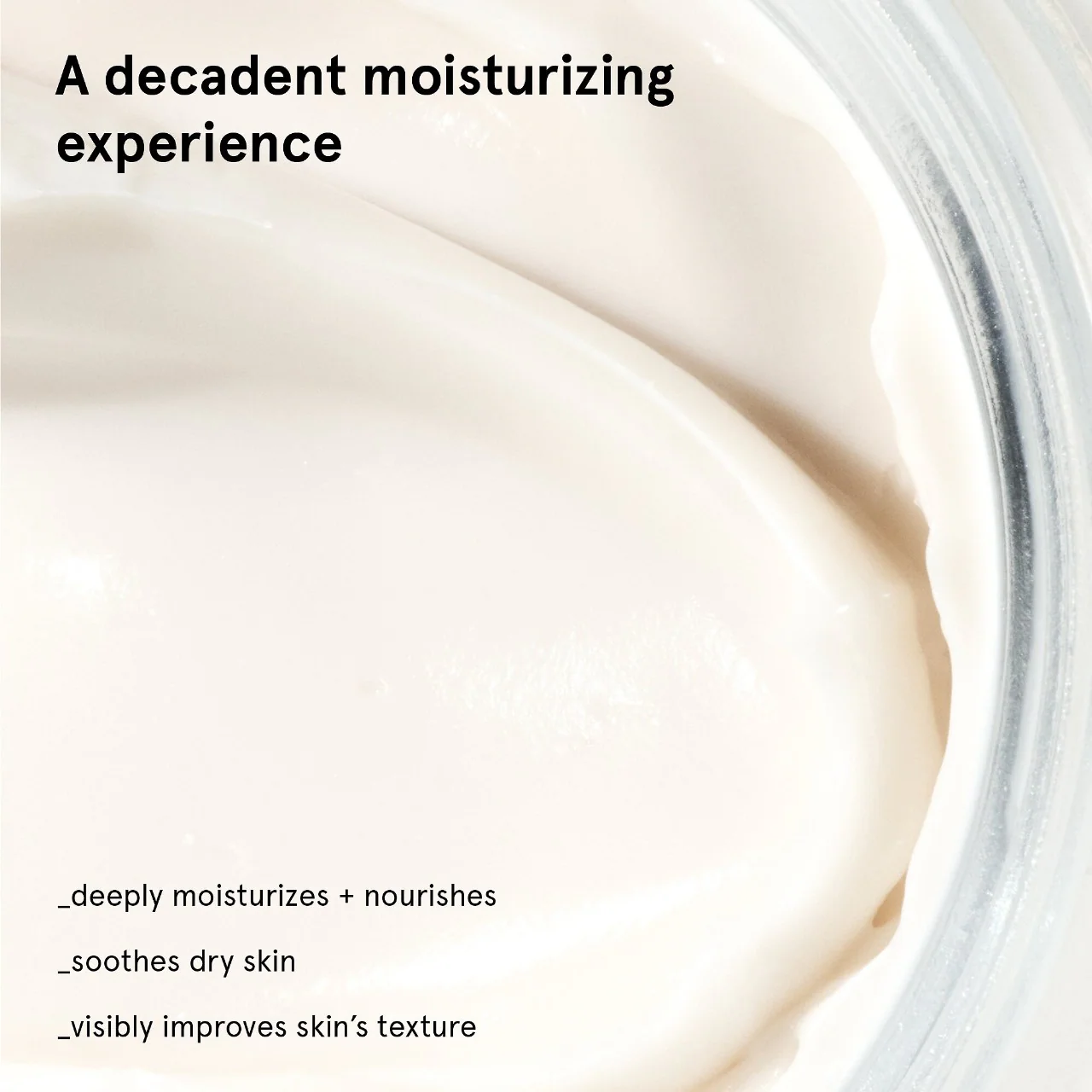Qué más necesitas saber: esta lujosa crema facial se funde directamente y deja la piel seca con una sensación suntuosa y totalmente hidratada. El escualano, las ceramidas y los ácidos grasos refuerzan la barrera de humedad de la piel, añadiendo luminosidad visible, mientras que las prebases potentes forman una base suave y preparan la piel para la aplicación del maquillaje.