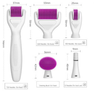 Componentes: 12 agujas/300 agujas/720 agujas/1200 agujas/cepillo facial/ranura de desinfección