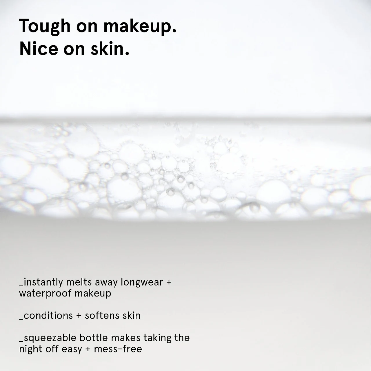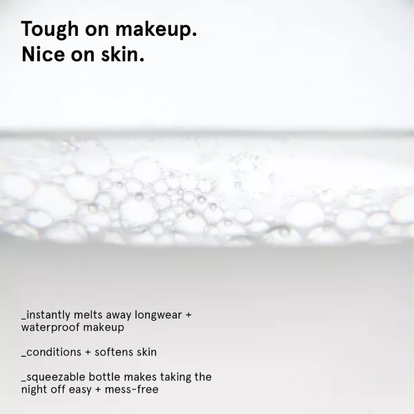Qué es: un desmaquillante híbrido suave, acondicionador, de aceite limpiador y agua micelar que se derrite y elimina el maquillaje resistente al agua y de larga duración sin tirar de la piel.