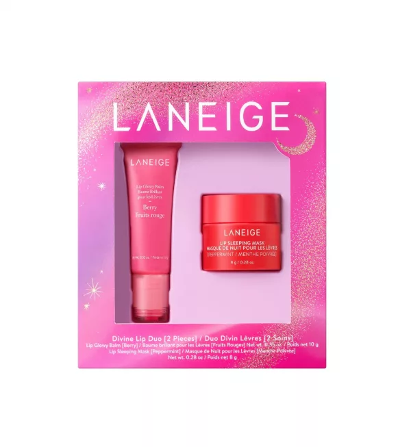 Qué es: un juego de dos piezas de edición limitada que incluye dos productos labiales favoritos de LANEIGE: Lip Glowy Balm en Berry y Lip Sleeping Mask en Peppermint.