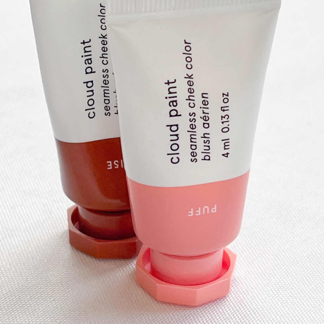 – 2 x 0,13 oz/4 ml Cloud Paints en tonos Rise (terracota cálido) y Puff (rosa claro y frío)