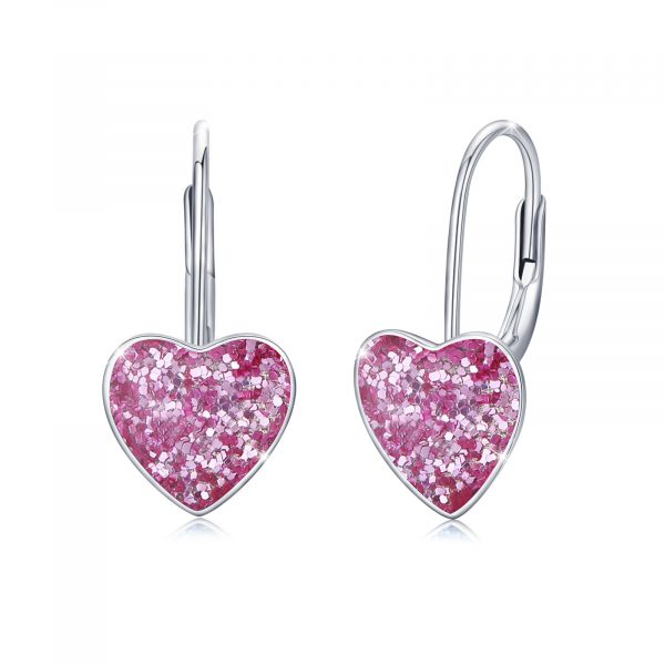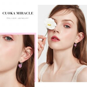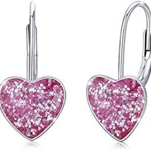 El deslumbrante y dulce par de aretes de corazón rosa brillan con una luz brillante en todos los ángulos, los aretes de aro con bisagras brillantes, encantadores y llamativos, te distinguen de la multitud.