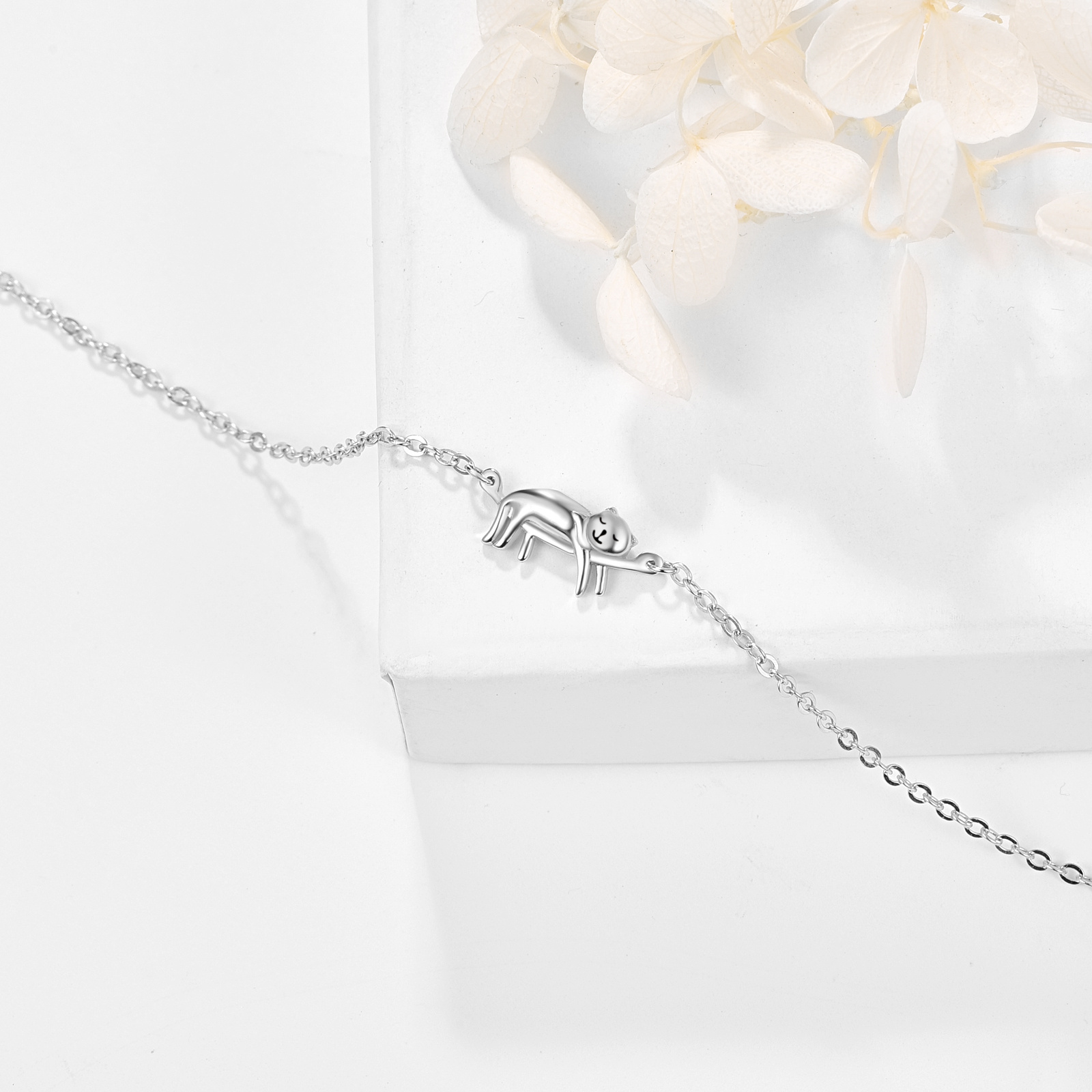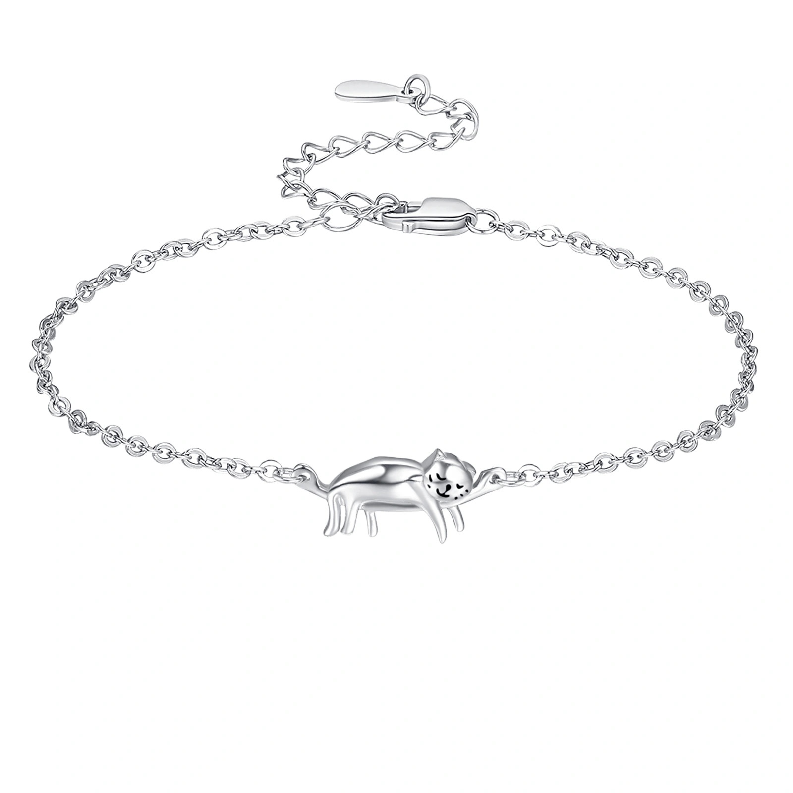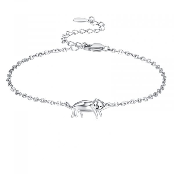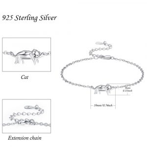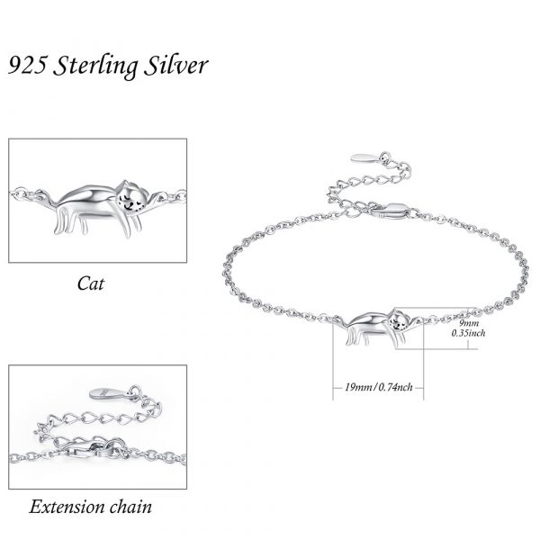 Pulseras de gato para mujer, de plata de ley, pulseras de gatito, hipoalergénicas, lindas joyas de gato para amantes de los gatos, cadena ajustable